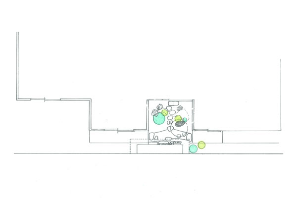 ▲入口横の植栽は、横に広がりにくい木を植えることで通路の空間を確保しています。