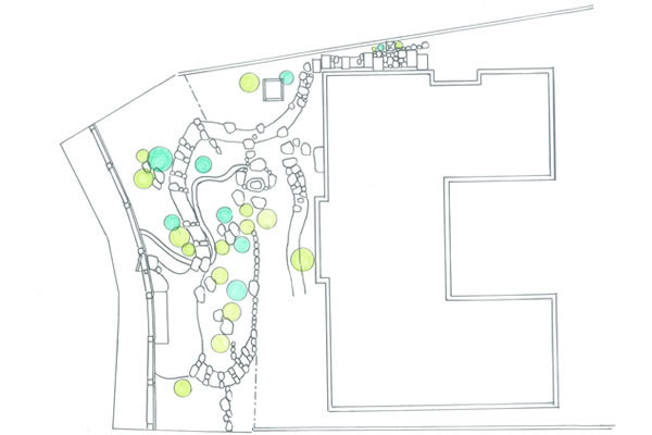 ▲石を穏やかな曲線で配置した石段は、美しさと土止めを兼ね備えています。